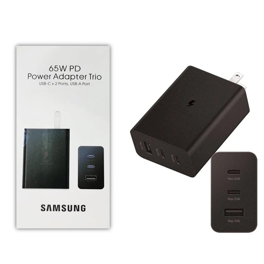 Adaptador Trio de carga super rápida - sin cable (65W). Patas Americanas.